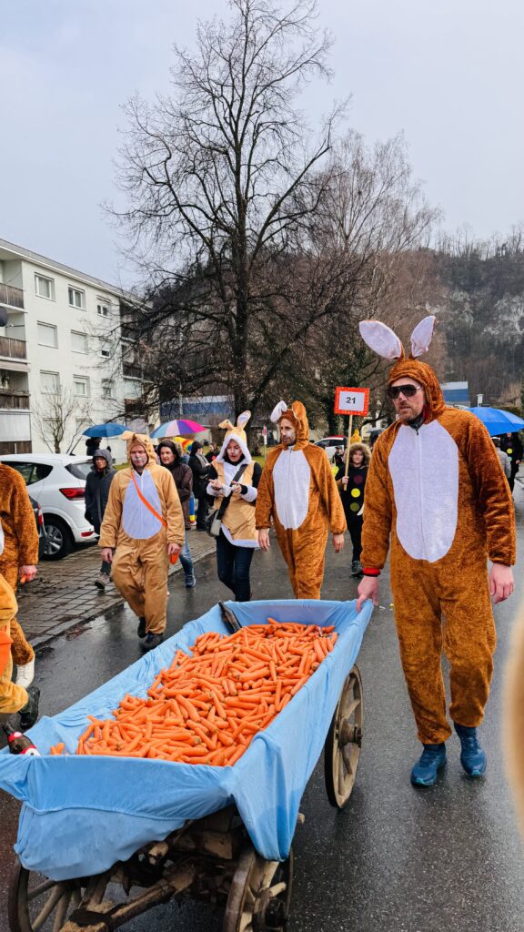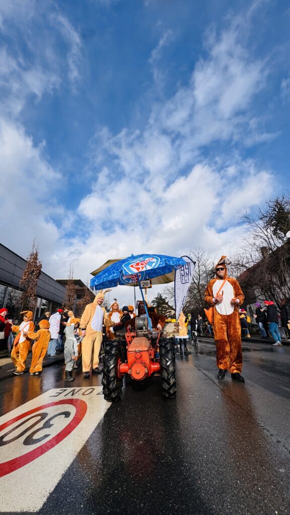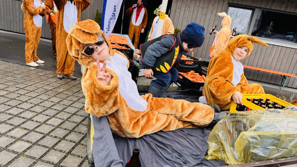 Entlang der Umzugsstrecke verteilten unsere „Hasen“ fleißig Karotten an Groß und Klein. Die Aktion sorgte für viele lachende Gesichter und beste Stimmung – genau so, wie man sich einen Faschingstag wünscht. Ein großes Dankeschön geht an die Tostner Freunde für die tolle Organisation. Der Umzug war rundum gelungen und für uns einmal mehr ein richtig schöner, gemeinsamer Vereinsnachmittag. Ein weiters Dankeschön geht an Eurospar Gisingen, der uns die 200kg Bio Karotten gesponsert hat.